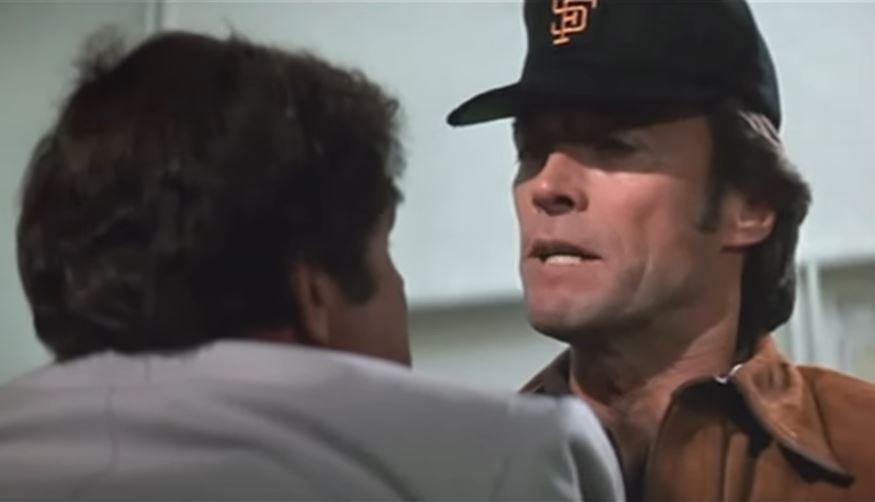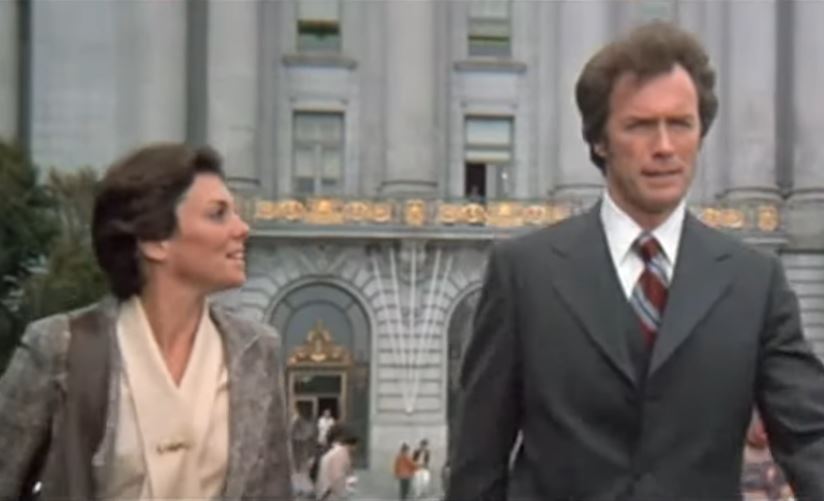 In “The Enforcer,” there is maniacal laughing during an autopsy. This is as edgy as it will get. (That, and perhaps interrupting the adult-film production.) The movie is careful to suggest black militants are not the bad guys, only mistaken by bigots as the bad guys. It seems white liberals, not monstrous killers, are Harry’s biggest obstacle. There’s a reference to “Neanderthal” thinking in the SFPD. At one point, Harry is told of a new quota for San Francisco police inspectors, five men and three women. A woman tells Harry that the mayor’s goal is that the department “be brought more into line with the mainstream of 20th century thought,” which is kinda funny. But the bad guys this time are virtually all white, and there are no “Do you feel lucky” questions directed at villains of other races.