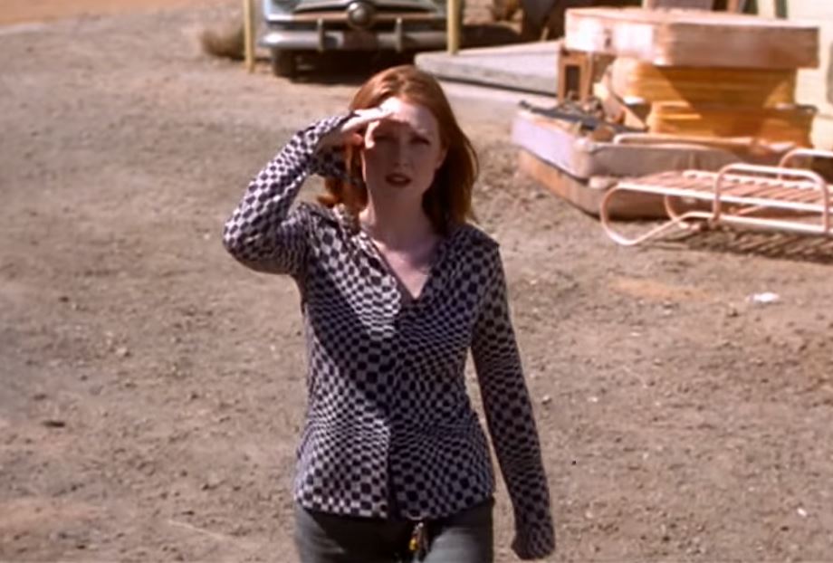 Moore is telling the rest of the characters to wake up. She’s the only character here convinced that someone may have actually died. She stalks the grounds a little bit like Brad Pitt at the Spahn Ranch in “Once Upon a Time... in Hollywood.”