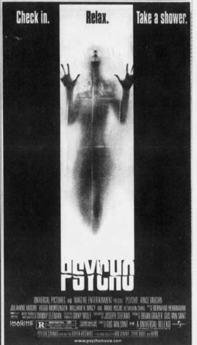 A newspaper ad for “Psycho” in December 1998