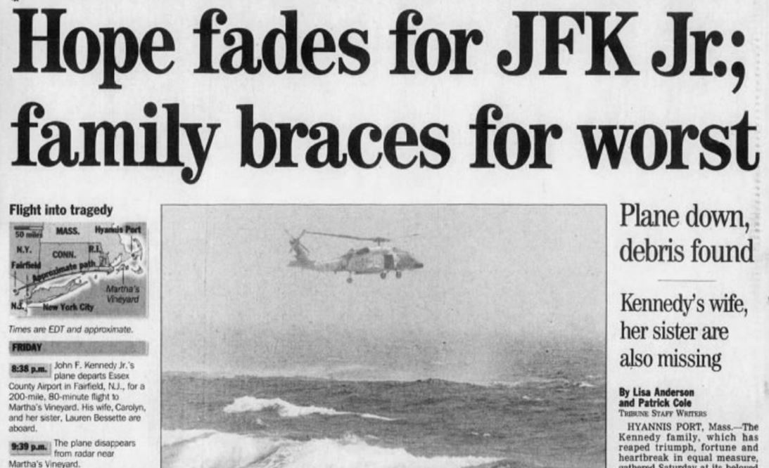 John F. Kennedy Jr., his wife, Carolyn Bessette, and her sister, Lauren Bessette, died in the crash of the Piper Saratoga II plane that Kennedy was piloting to Martha’s Vineyard on Friday, July 16, 1999.