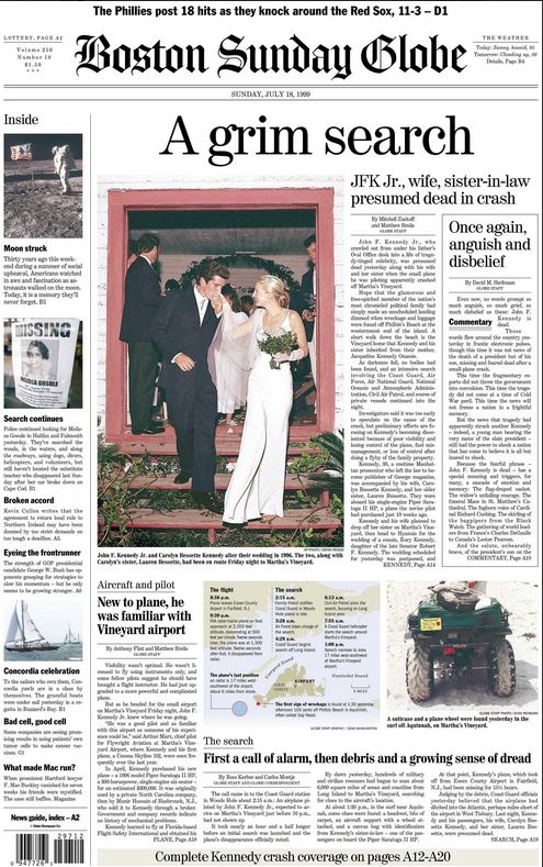 The Boston Globe front page on July 18, 1999