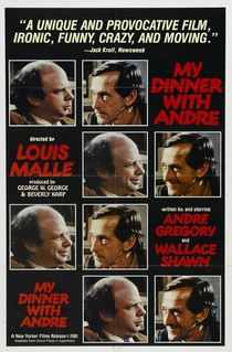“My Dinner with Andre” is a bitch session, New Age style. The mid-30s protagonist explains that he has forsaken a comfortable, happy, (presumably) corporate/executive life (his real-life father was the New Yorker editor William Shawn, who famously hired Pauline Kael) to take a crack at the arts, and for that, he continues to pay the price. He set out to create things and entertain people, but his life is one of rejection.