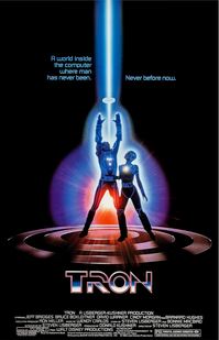 1982: Tron — PG, 1 hour, 36 minutes, directed by Steven Lisberger, produced by Donald Kushner; starring Jeff Bridges as Kevin Flynn, Bruce Boxleitner, Cindy Morgan, David Warner; soundtrack by Wendy Carlos (first credited soundtrack); Oscar nominee for Best Sound (Michael Minkler, Bob Minkler, Lee Minkler, James LaRue), lost to E.T. the Extra Terrestrial (Robert Knudson, Robert Glass, Don Digirolamo, Gene S. Cantamessa); Oscar nominee for Best Costume Design (Elois Jenssen, Rosanna Norton), lost to Gandhi (John Mollo, Bhanu Athaiya); Disney